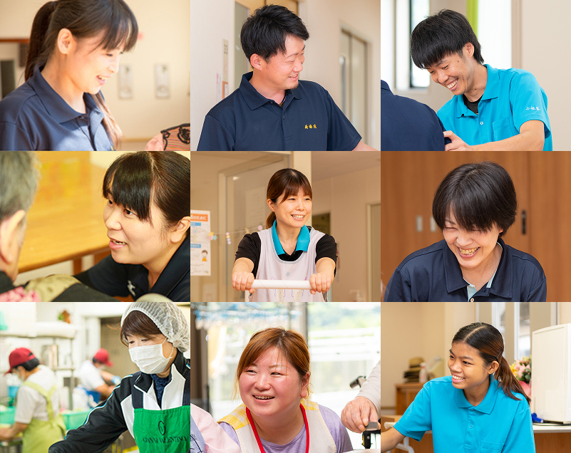 私たちは、利用者の皆様はもちろんのこと職員も、そして地域の皆様にも喜んでもらえる「みんなの笑顔が輝く」施設づくりを目指しています。私たちと一緒に「笑顔で」仕事に取り組んでいただける方をお待ちしております。